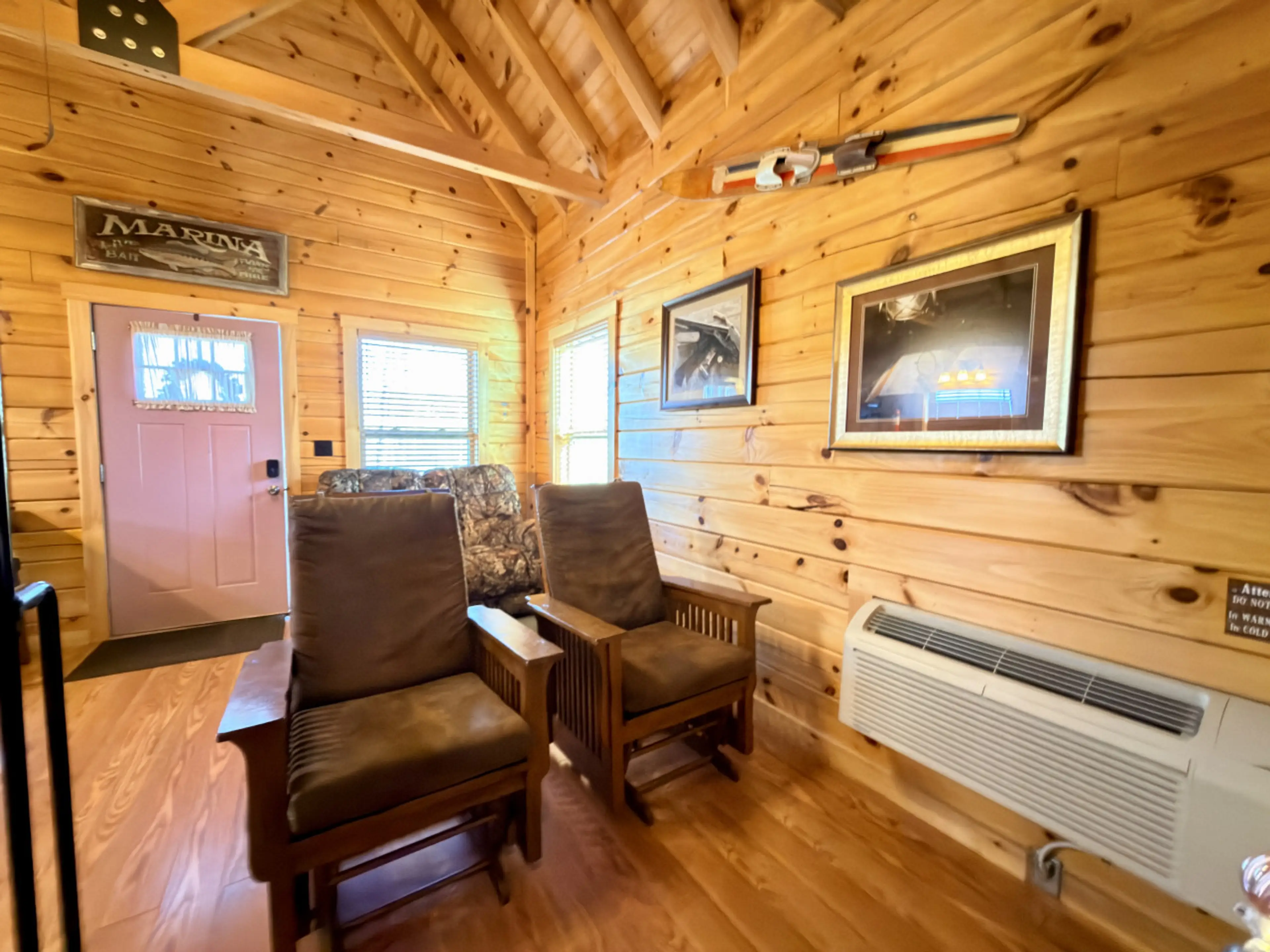 We came over Labor Day weekend. We wanted to just spend time on the river, so that was the perfect. The only thing that was a little difficult for us was were used to sleeping in the same bed and the biggest bed that they had was a full-size with a twin bunk over the top and then they had twin beds up in the loft so myself, and my dog slept in the full size, and my husband went up to the loft and slept in a twin bed. We didn’t take any pictures at the actual cabin, but here are a few at the marina and on the river, which was less than half mile away, which was awesome.